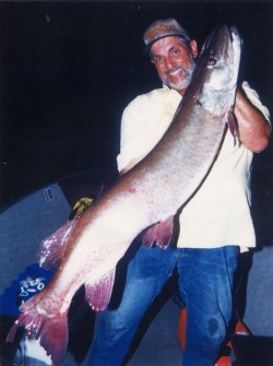 After a deep, bulldogging fight the big fish came near the surface, and my partner Mike Zielonkia scooped it up in my magnum Beckman net. The monster was 53 1/2-inches long and over 40-pounds.