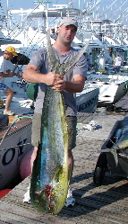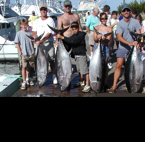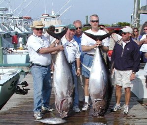 March-April.....Yellowfin tuna are available off the Outer Banks of North Carolina throughout the year. However, from mid- March thru April, as the waters warm up and weather begins to stablize, tuna fishing really heats up, with excellent action for 15-70 lb yellowfin. As you get latter into April, more dolphin, wahoo and a even a few billfish begin migrating into North Carolina waters and become more consistent componants of the daily catches.